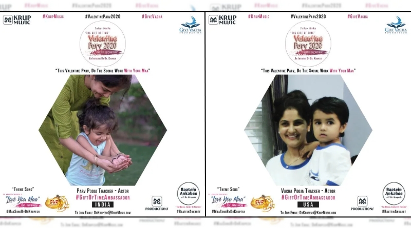 ડો. કૃપેશ નયનાબેન ઠક્કર દ્વારા “વેલેન્ટાઇન પર્વ 2020” માટે ગુજરાતી અને હિન્દીમાં માતા માટે થીમ ગીત તૈયાર કરેલ છે જેમાં “ગીફ્ટ ઓફ ટાઇમ” ના ભારતીય એમ્બેસેડર પર્વ પૂજાબેન ઠક્કર એ મુખ્ય કલાકાર તરીકે તેમજ અમેરિકા ની એમ્બેસેડર વાચા પૂજાબેન ઠક્કર એ ગાયક તરીકે પોતાની કલાનું યોગદાન આપ્યું છે. આ ઉજવણીના અંતે વિશ્વક એમ્બેસેડર તરીકે ડો. કૃપેશ નયનાબેન ઠક્કર “વસુધૈવ કુટુમ્બકમ” ના સંદેશ સાથે વિશ્વના 7 દેશોના પ્રતિનિધિઓ ને મળવા તેમજ વધુ લોકો સુધી ભારતીય સાંસ્કૃતિક વારસાને લઈ જવા પ્રવાસ કરશે.